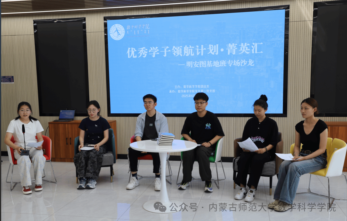 为深入贯彻“党建带团建、团建促学风”工作理念,发挥学生党团组织引领作用,sjb世俱杯官方网站于6月13日在盛乐校区学院楼C301举办“优秀学子领航计划·菁英汇之明安图基地班专场沙龙”。本次活动由学院团总支协同学生第一党支部联合举办,旨在加强班级团支部建设,通过榜样示范助力优良学风培育。活动由学生第一党支部书记阿茹罕主持,学院党委副书记、副院长季建光参与指导。