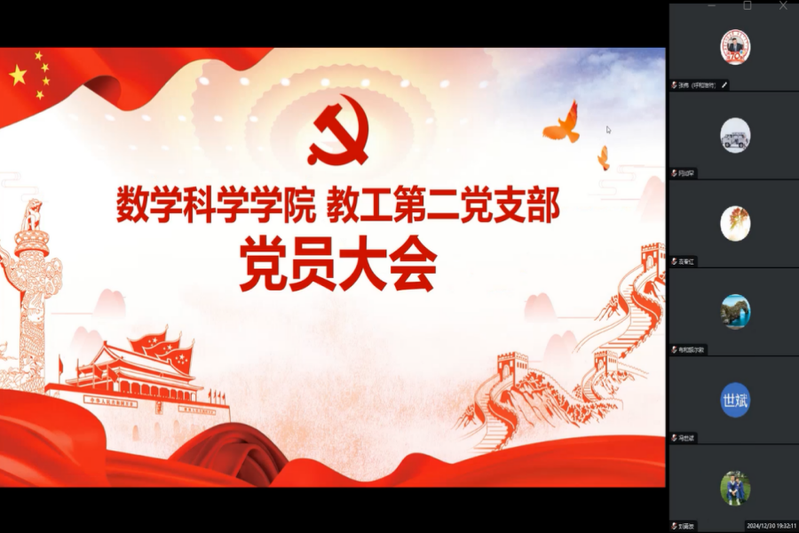 sjb世俱杯官方网站sjb世俱杯官方网站教工第二党支部于2024年12月30日召开党员大会,会议围绕三项重要议题展开深入讨论。会议由支部书记主持,全体党员出席,会议通过腾讯会议的形式在线上进行。