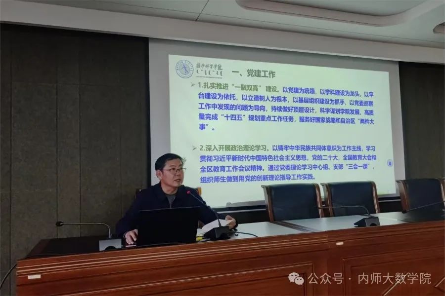 学院院长扎其劳围绕2025年工作要点,深入解读了党建与业务深度融合的新路径。他强调,要扎实推进“一融双高”建设,以党建为统领,以学科建设为龙头,以平台建设为依托,以立德树人为根本,以基层组织建设为抓手,认真抓好工作顶层设计、人才培养、专业建设等各项落实,努力开创学院高质量发展新局面。