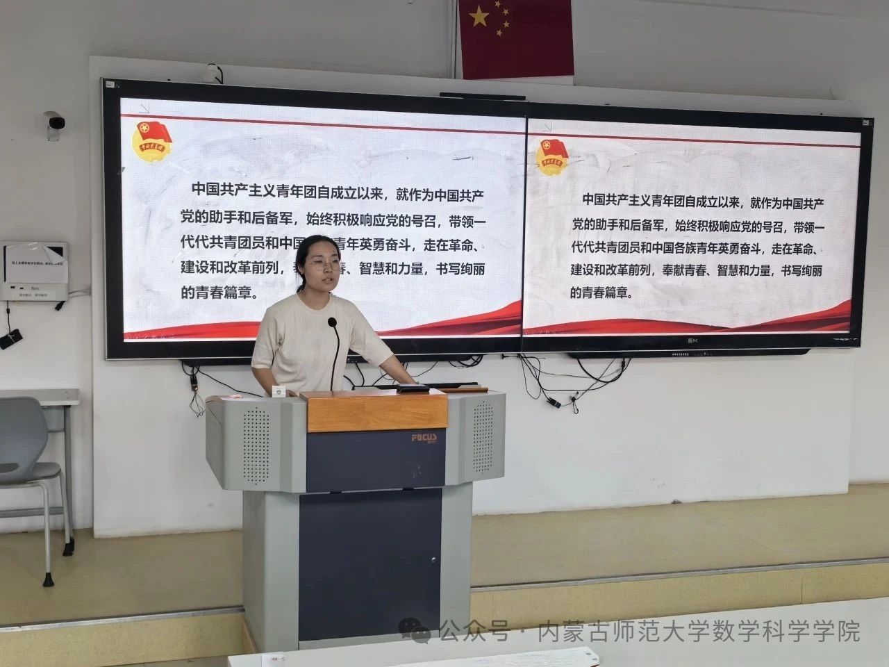 百年栉风沐雨,共青团始终与党同心、跟党奋斗。学院团总支副书记阿茹罕老师讲述共青团在革命、建设、改革等不同历史阶段的奋斗故事,引导入团积极分子进一步坚定理想信念,汲取前行力量,让共青团的精神火炬在新时代青年手中薪火相传,激励大家将火热奋斗的青春融入党和国家的壮丽事业中。