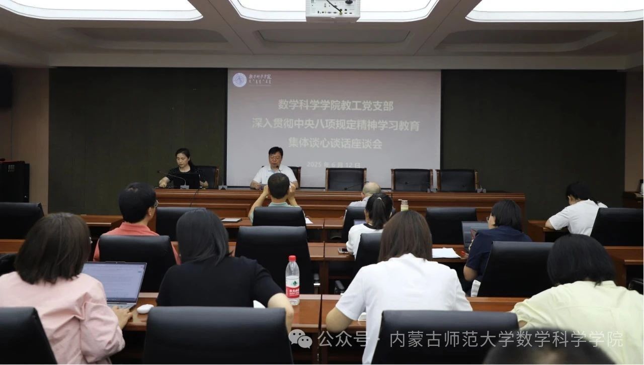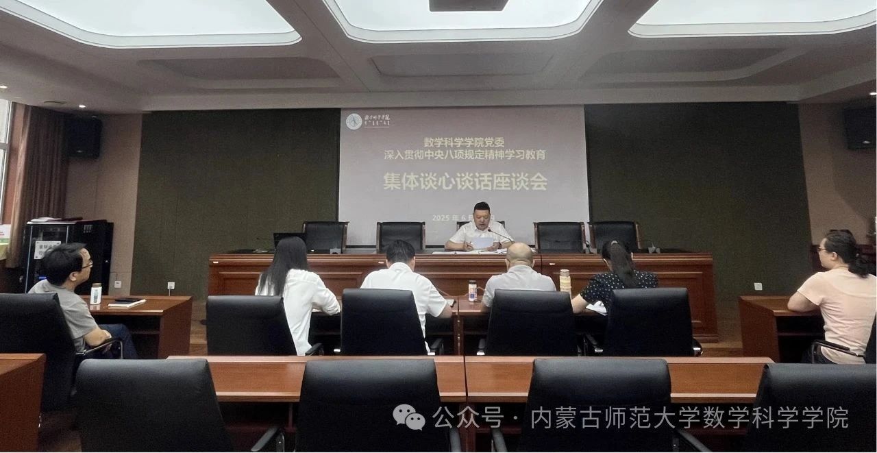 近日,sjb世俱杯官方网站党委召开深入贯彻中央八项规定精神学习教育集体谈心谈话座谈会。学院党委及各党支部就集中整治违规吃喝问题、厉行节约反对浪费等内容,党委书记与班子成员、各支部书记与支部党员,以座谈会的形式与党员教师进行了集体谈心谈话。