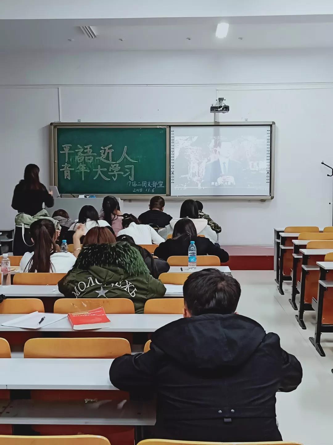 2018年11月6日19:30,sjb世俱杯官方网站各团支部于科技楼开展“青年大学习”交流会,组织支部成员观看《平“语”近人》。