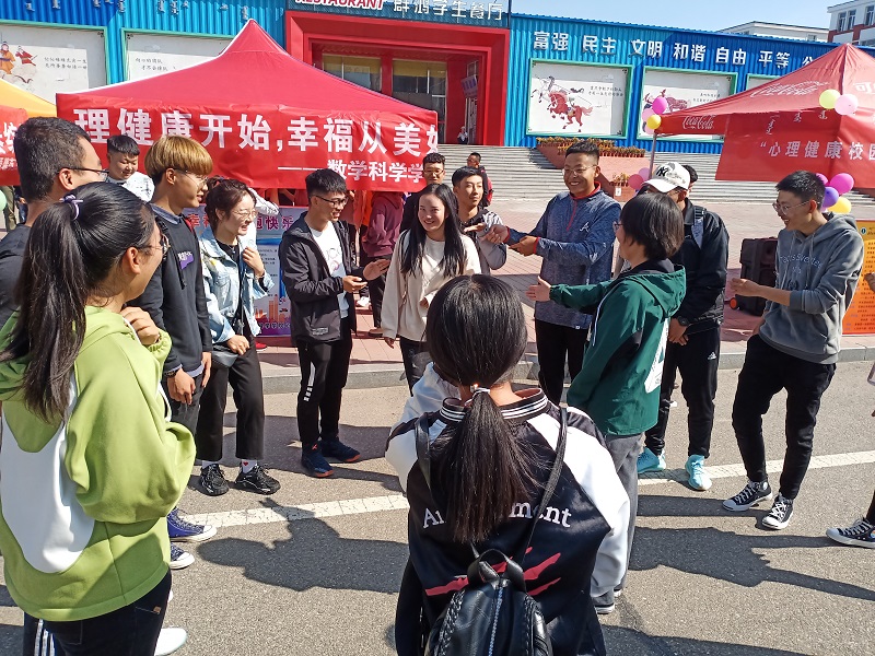 2019年10月10日,是第28个“世界精神卫生日”,为关注大学生心理健康,打破同学们彼此之间的距离感,增进同学情谊,sjb世俱杯官方网站心语馨苑工作站积极响应学校号召,于群鸿餐厅西门开展“成功从心理健康开始,幸福从美好友情起锚”团体心理辅导活动。