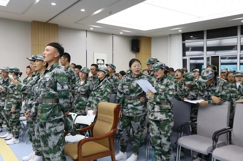 带领新生一起学习校歌和军歌