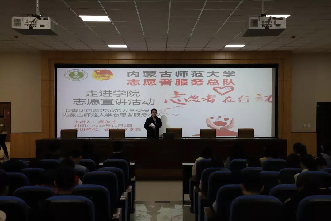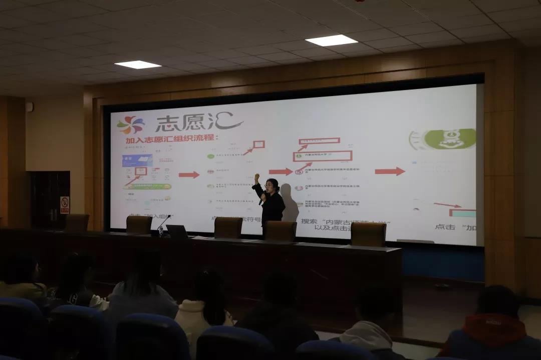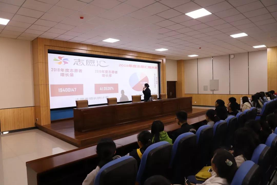2019年11月3日,为使各位同学积极投入志愿服务活动,更好地了解“志愿汇”APP,sjb世俱杯官方网站志愿者服务总队负责人冀永芳同学向sjb世俱杯官方网站各班班委及学生代表就志愿服务活动及“志愿汇”APP相关问题进行宣讲,此次志愿宣讲活动于学生事务中心一楼报告厅举行。