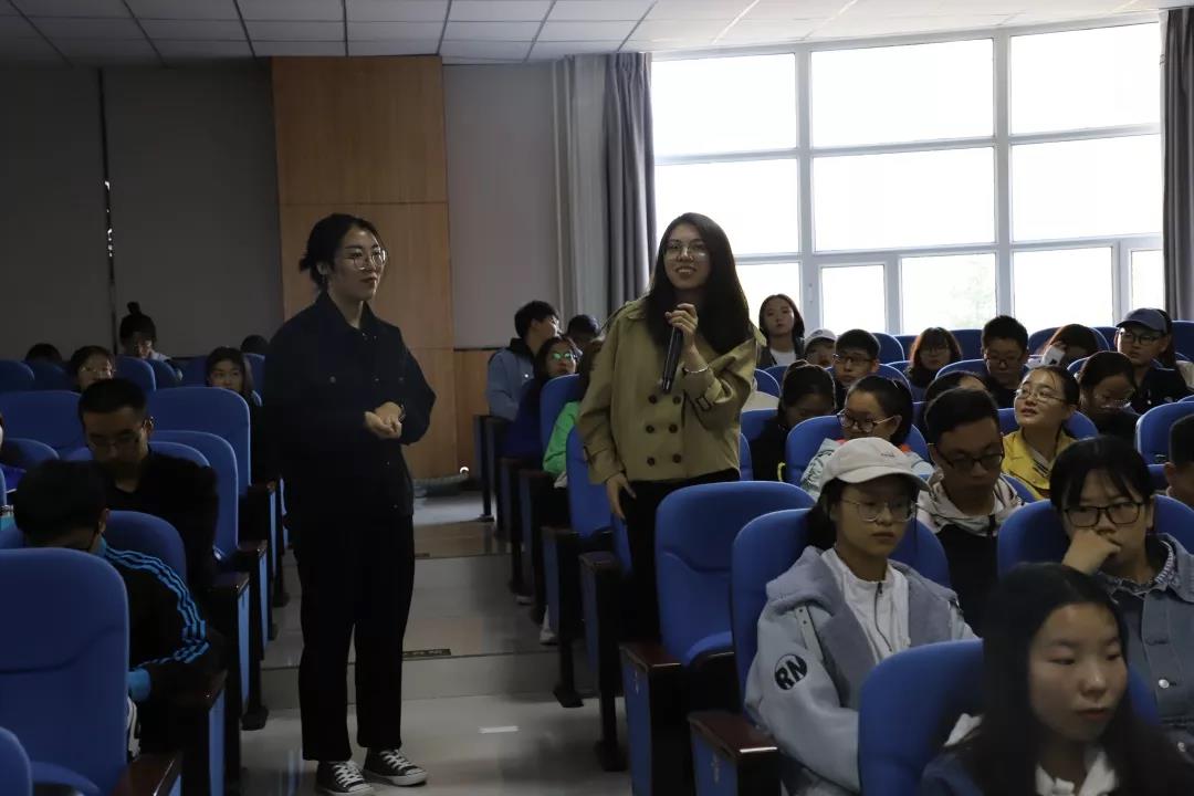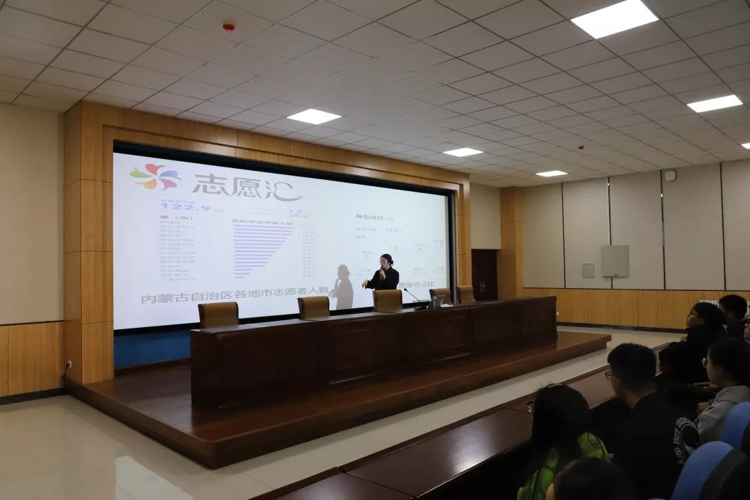 宣讲中冀永芳同学提到国家对志愿服务的重视,并向同学们介绍了“志愿汇”APP的注册流程及部分功能、2018年“志愿汇”相关统计数据、sjb世俱杯官方网站志愿者服务总队开展的部分活动。