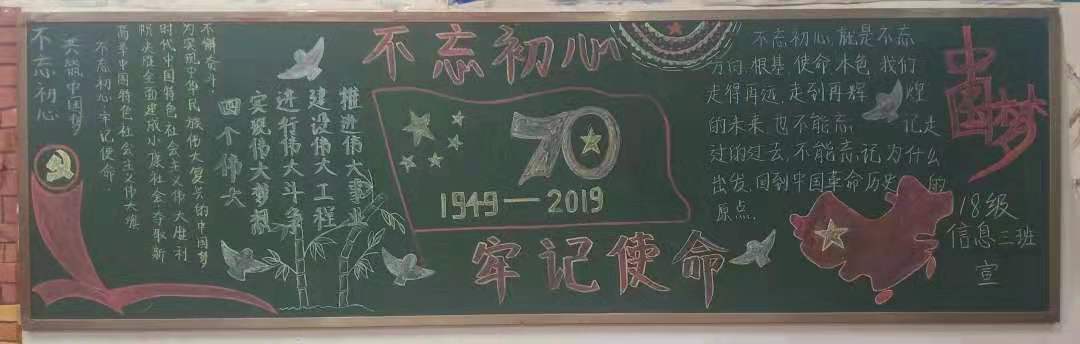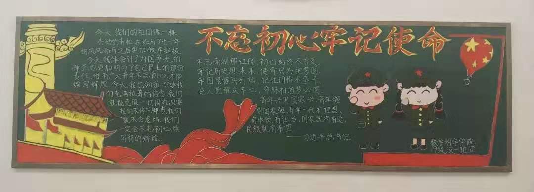 为扎实推进“不忘初心、牢记使命”主题教育,让广大学生坚定理想信念、进一步激发大家的爱国热情,激励同学们勇于作为、勇于担当,2019年11月sjb世俱杯官方网站开展板报评比大赛,学院18、19级各团支部积极参与,板报设计主题鲜明、内容丰富。