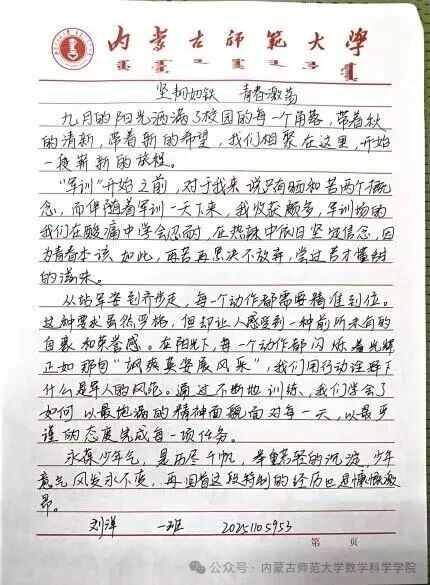 军训仍在火热进行中,sjb世俱杯官方网站学子的笔尖已悄然记录下这段旅程的点滴感悟。那些关于坚持的独白、关于团结的思考、关于蜕变的期许,正从字里行间缓缓流露,成为当下军训时光最鲜活的注脚。