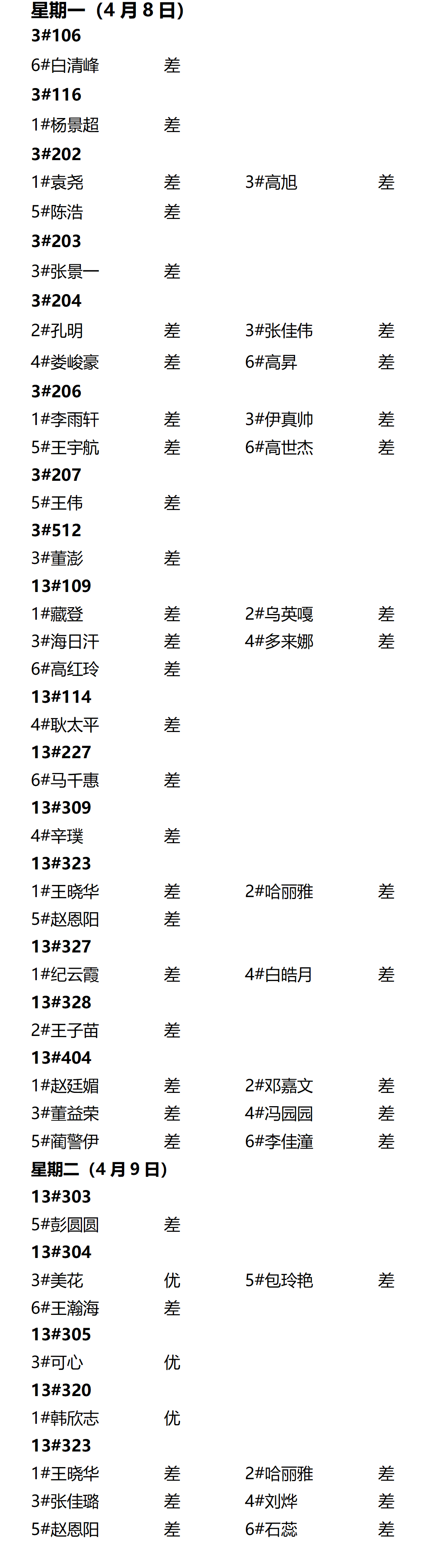 第七周内务情况