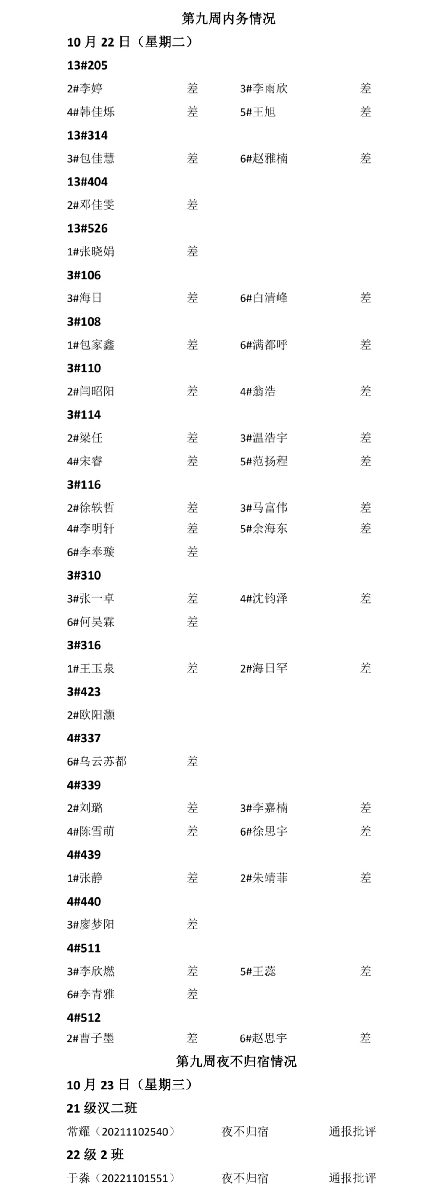 sjb世俱杯官方网站2024——2025年度第一学期第九周通报情况