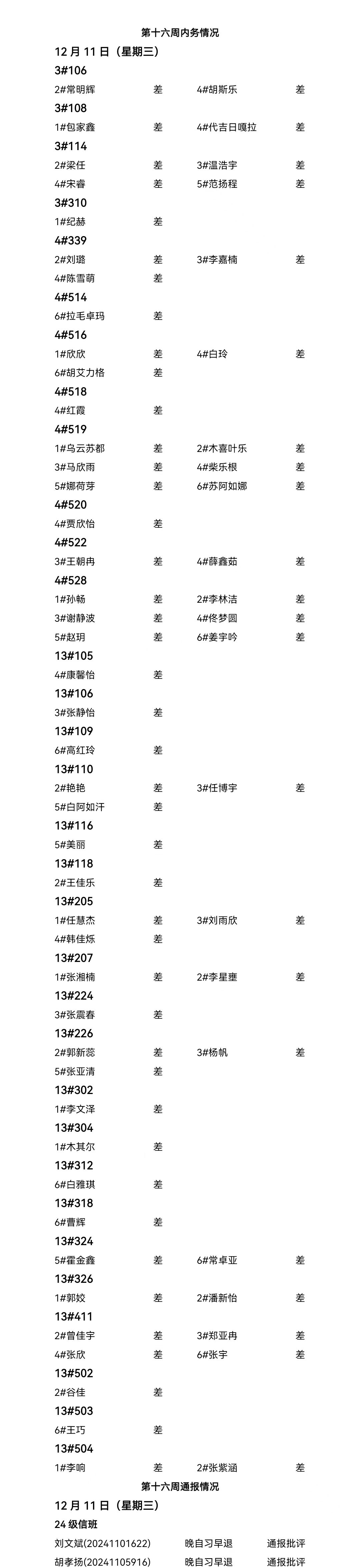 sjb世俱杯官方网站2024——2025年度第一学期第十六周通报情况