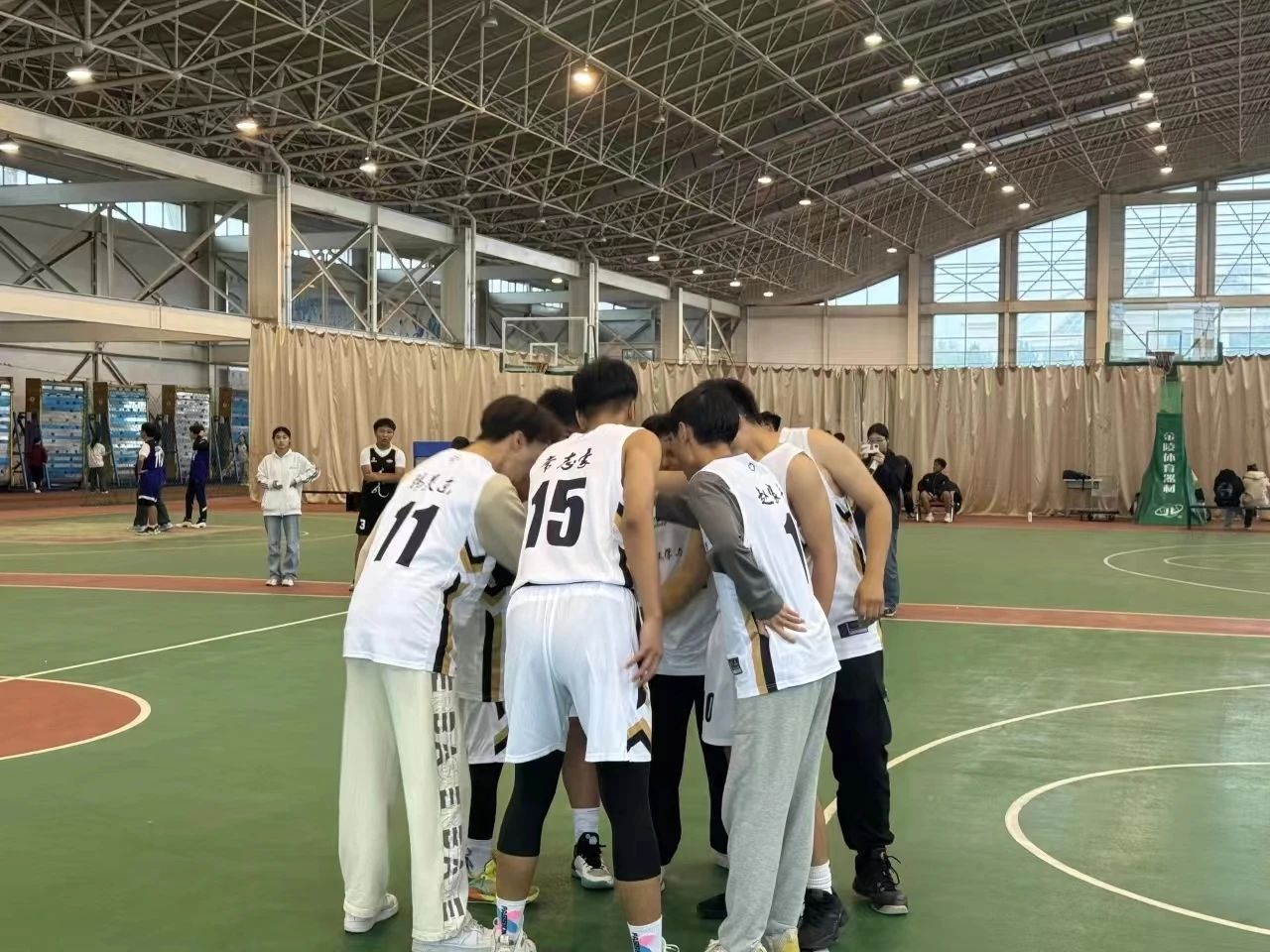 中场休息时,运动员们迅速围成一圈,声浪滚滚、互相鼓劲、气势如虹,仿佛可冲破一切阻碍,这也为这次比赛成为的回忆增添了一抹绚丽浓重、璀璨夺目的色彩。