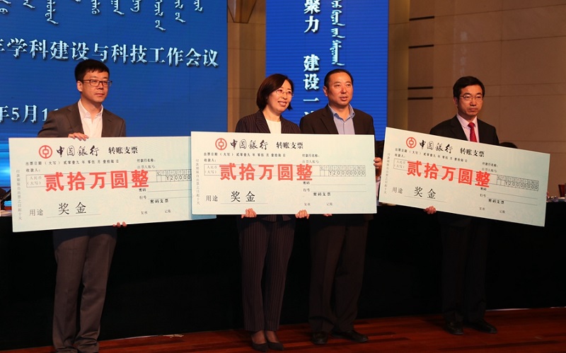 高云峰、刘九万和王来喜分别宣读《关于表彰在2017年学位授权审核工作中作出突出贡献的学科和单位的决定》《关于表彰sjb世俱杯官方网站第二届科学技术创新奖和科技工作先进集体、先进个人的决定》《关于对重大科研成果及科研项目进行奖励的决定》。世俱杯被评为学位授权审核工作中作出突出贡献的单位,荣获“科技工作先进集体”称号,李联和老师荣获青年科学技术创新奖。