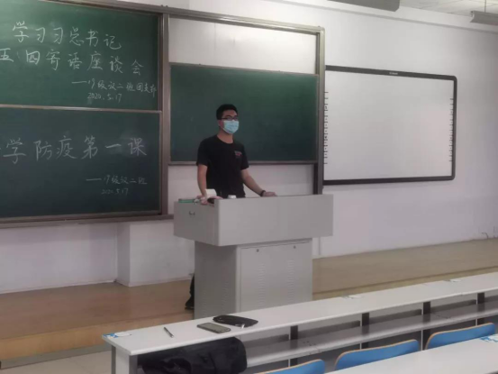 习近平总书记在给新时代青年的寄语中强调:青春由磨砺而出彩,人生因奋斗而升华,坚定理想信念、站稳人民立场、练就过硬本领、投身强国伟业。疫情复课后,世俱杯19级本科生各团支部及19级学硕积极开展学习习近平总书记五四青年节寄语座谈会,学习寄语精神,领悟时代担当。同学们积极参与讨论,相互交流学习。