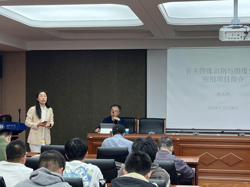 杨大利老师首先向大家详细阐述了图像识别与图像处理的原理,其次结合“青藏铁路铁轨质量图像检测”“纱线外观质量数字图像的分析方法”“集成电路板自动封焊机的芯片定位方法研究”“垫片质量自动检验机”等多个完成的企业应用项目,分享了自己科研经历和体会;最后讲述了如何指导研究生撰写“除草机器人机器视觉关键技术研究”等与图像识别、图像处理相关的学位论文的情况。