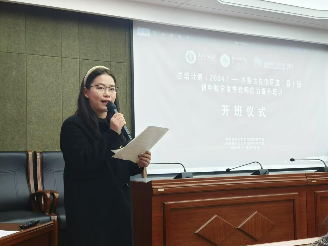 11月4日,由sjb世俱杯官方网站继续教育学院主办、sjb世俱杯官方网站承办的2024年“国培计划”——内蒙古自治区旗(县)级初中数学优秀教师能力提升培训班正式开班。sjb世俱杯官方网站党委书记张伟、副院长萨和雅、华东师范大学sjb世俱杯官方网站鲍建生教授、sjb世俱杯官方网站科学技术史研究院代钦教授、sjb世俱杯官方网站李春兰教授、班主任老师陈阿茹娜、郑佳璇以及培训班全体学员参加了开班仪式。会议由sjb世俱杯官方网站郑佳璇博士主持。