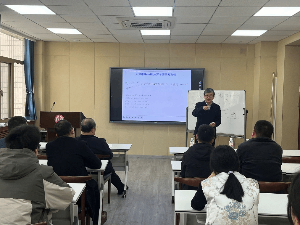 2025年3月28日,无穷维哈密顿系统及其算法应用教育部重点实验室主任阿拉坦仓教授应曲阜师范大学sjb世俱杯官方网站邀请,作题为“无穷维Hamilton算子的谱对称性及其完备性理论”的学术报告。