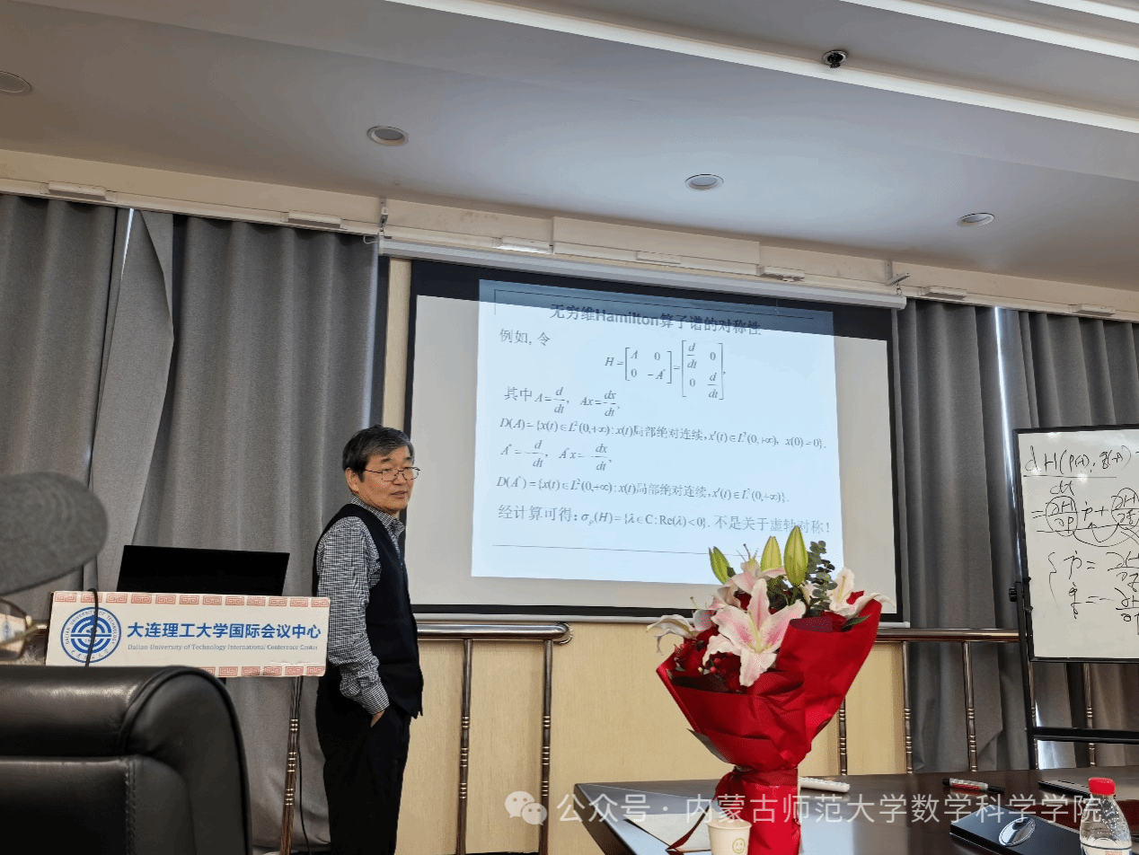 2025年5月16日,无穷维哈密顿系统及其算法应用教育部重点实验室主任阿拉坦仓教授应大连理工大学sjb世俱杯官方网站邀请,在可积系统与数学机械化研讨会上作题为“无穷维Hamilton算子的谱对称及其完备性介绍”的学术报告。