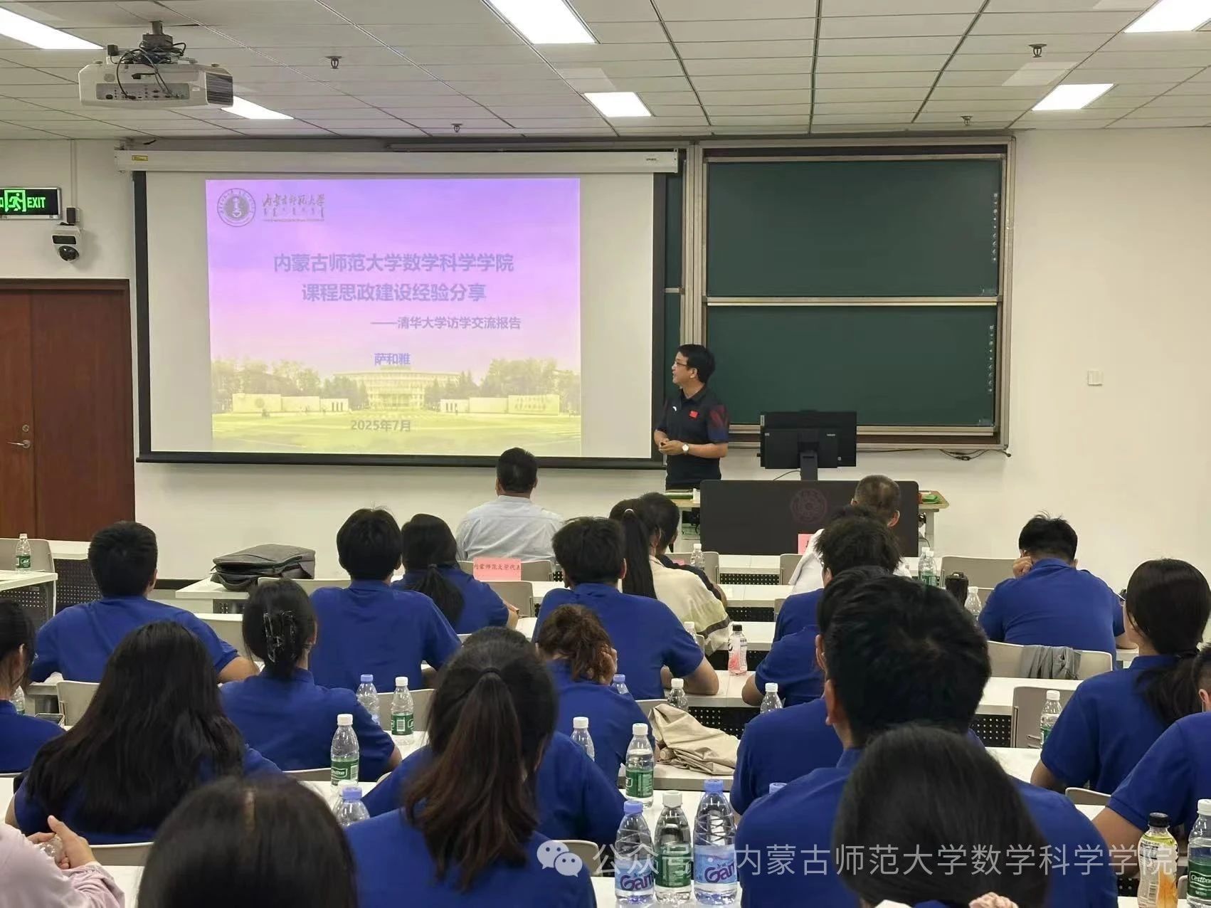 为深入贯彻落实习近平总书记关于教育的重要论述和教育部高等学校课程思政建设指导纲要,全面推进高校课程思政高质量建设,7月7日,sjb世俱杯官方网站sjb世俱杯官方网站副院长萨和雅、数学系副主任郑佳璇带队一行赴清华大学数学科学系参加数学课程思政教学经验交流会,世俱杯明安图数学拔尖学生培养基地班学生参加会议。来自清华大学、兰州大学、河南大学和sjb世俱杯官方网站师生40余人参会,会议由清华大学数学科学系副主任左怀青教授主持。