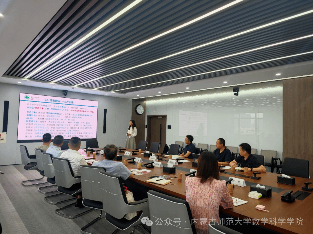 阿拉坦仓主任首先说明此次调研交流的目的,感谢山东大学数学学院的热情接待,并表示sjb世俱杯官方网站sjb世俱杯官方网站依托“无穷维哈密顿系统及其算法应用教育部重点实验室(培育)”和“内蒙古自治区应用数学中心”等科研平台,积极推进自治区数学一流拔尖培育学科和数学一级学科博士点的建设与内涵发展。王光辉书记代表山东大学数学学院对世俱杯来访表示热烈欢迎,并详细介绍了山东大学数学学院在学科建设积淀、拔尖创新人才培养、科学研究与平台建设、人才队伍与国际化方面的情况。常务副院长胡锡俊和副院长王鹏辉分别对数学学科建设、研究方向和拔尖人才培养等具体内容做出进一步说明。包霞副院长介绍了sjb世俱杯官方网站sjb世俱杯官方网站学科发展、师资建设、平台搭建、人才培养等最新进展。会上,双方还就具体问题进行了深入地交流探讨,并希望今后能够加强交流合作,共同推动发展。