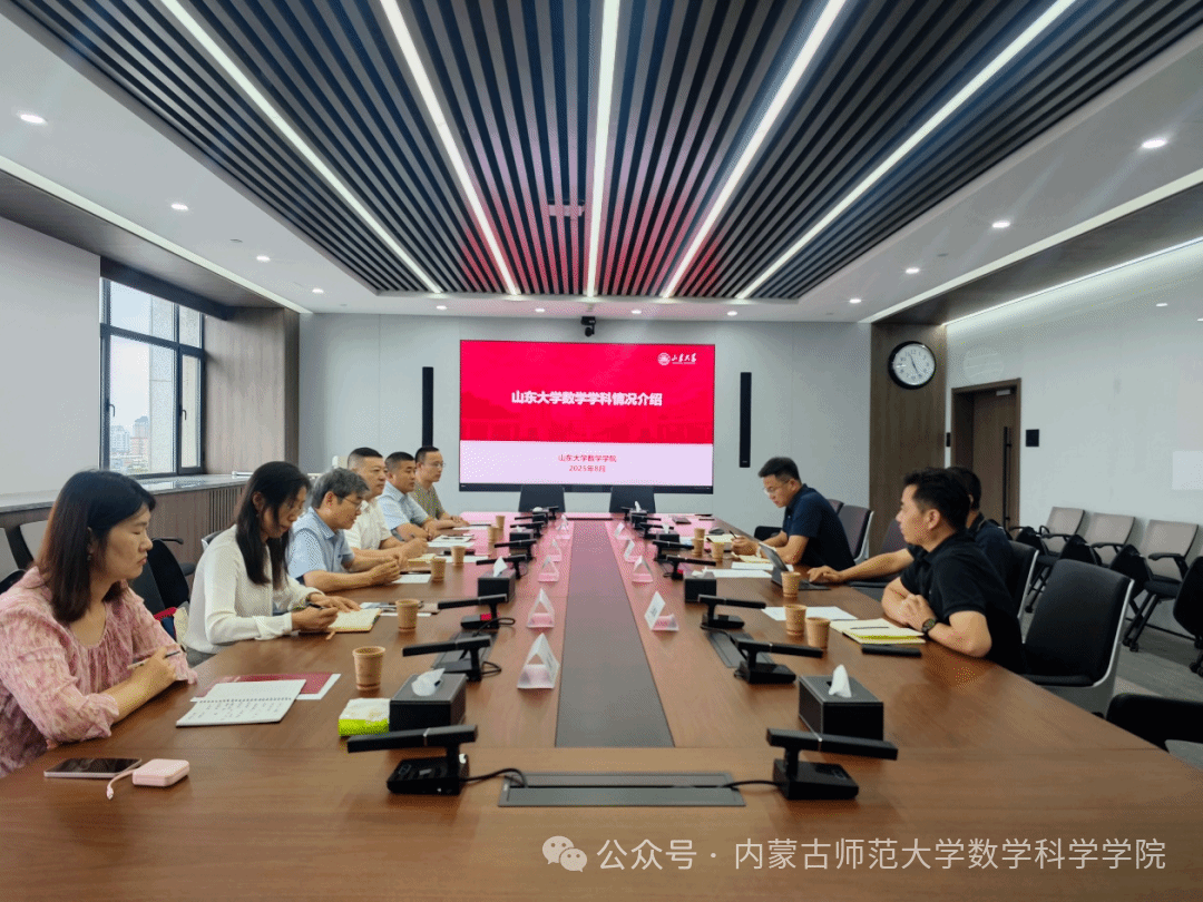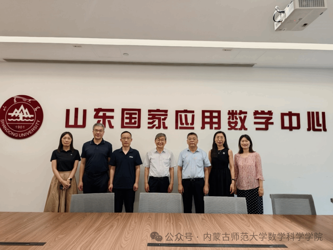 为学习山东大学数学一流学科建设、山东国家应用数学中心建设及高水平人才培育的先进经验与成功做法,2025年8月8日-9日由我校教育部重点实验室主任阿拉坦仓教授带队,sjb世俱杯官方网站党委书记张伟、副院长包霞、计算数学方向负责人布仁满都拉、应用数学方向负责人周艳、基础数学方向负责人耿俊赴山东大学拜会山东大学党委书记任友群和副校长刘建亚,并到山东大学数学学院和山东国家应用数学中心开展调研交流。山东大学数学学院党委书记王光辉、常务副院长胡锡俊、副院长王鹏辉、山东国家应用数学中心执行委员会副主任陈增敬、济南应用数学高等研究院综合事业部部长任婷婷和数学学院办公室主任霍睿等参加了此次调研活动。