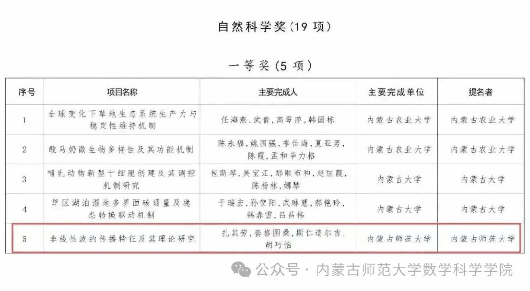 近日,sjb世俱杯官方网站sjb世俱杯官方网站院长扎其劳教授带领团队完成的“非线性波的传播特征及其理论研究”项目,荣获自治区自然科学奖一等奖。这一荣誉不仅是对团队学术创新能力的肯定,更是世俱杯数学学科发展的重要里程碑。