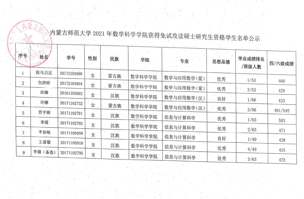 为保障推荐优秀应届本科毕业生免试攻读硕士学位研究生(以下简称推免生)工作的顺利发展,促进本科教学质量的提高,根据《sjb世俱杯官方网站推荐优秀应届本科毕业生免试攻读硕士学位研究生工作实施办法》文件精神,结合学院实际,通过sjb世俱杯官方网站2021年优秀应届本科毕业生推荐免试攻读硕士学位领导小组工作(以下简称推免工作)会议,评选出了获得2021年sjb世俱杯官方网站推荐免试攻读硕士研究生资格的学生及预备推荐免试攻读硕士研究生资格学生名单。现对推免工作领导小组成员、获得2021年sjb世俱杯官方网站获得推荐免试攻读硕士研究生资格学生(预备推荐学生)名单进行公示,具体内容请见附件!