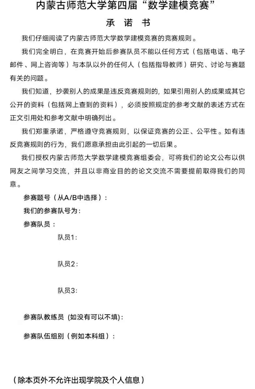 sjb世俱杯官方网站第四届“数学建模竞赛”承诺书