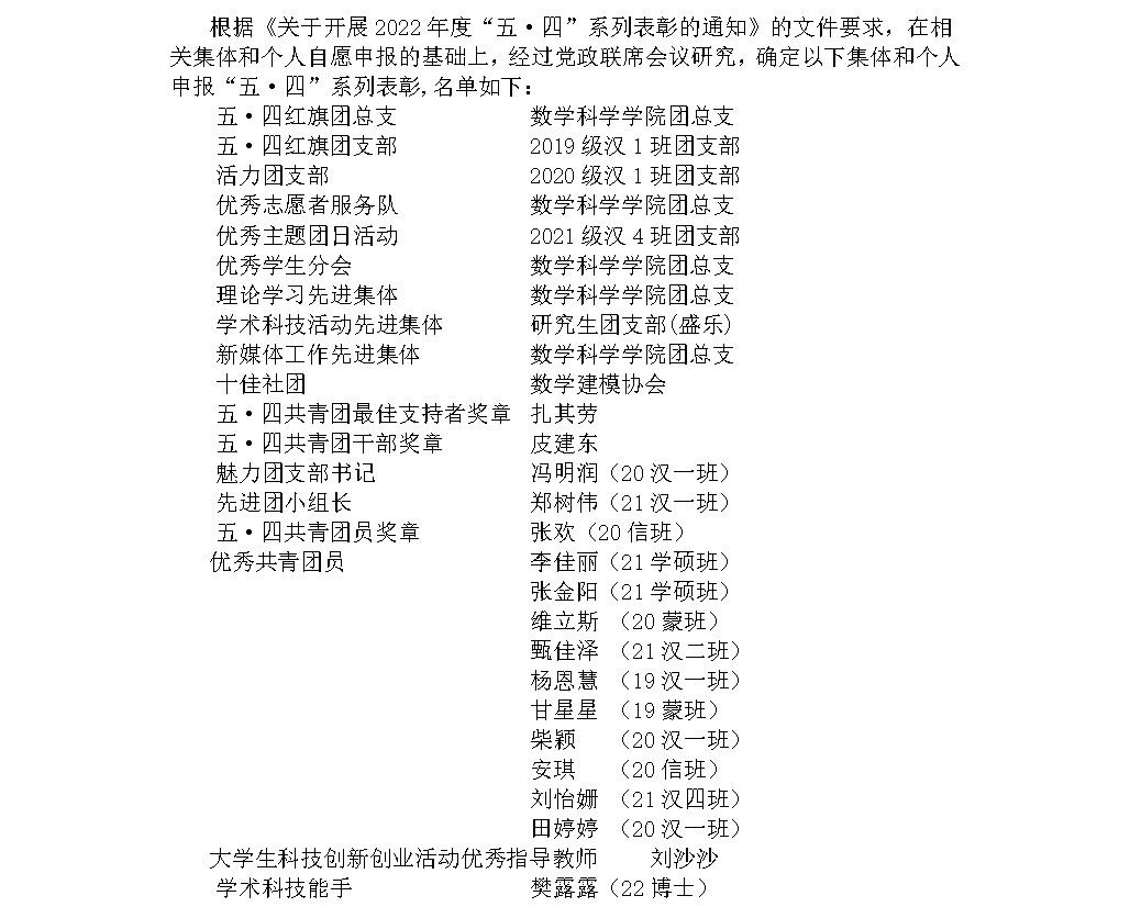 sjb世俱杯官方网站2022年度“五·四”系列表彰推荐名单公示