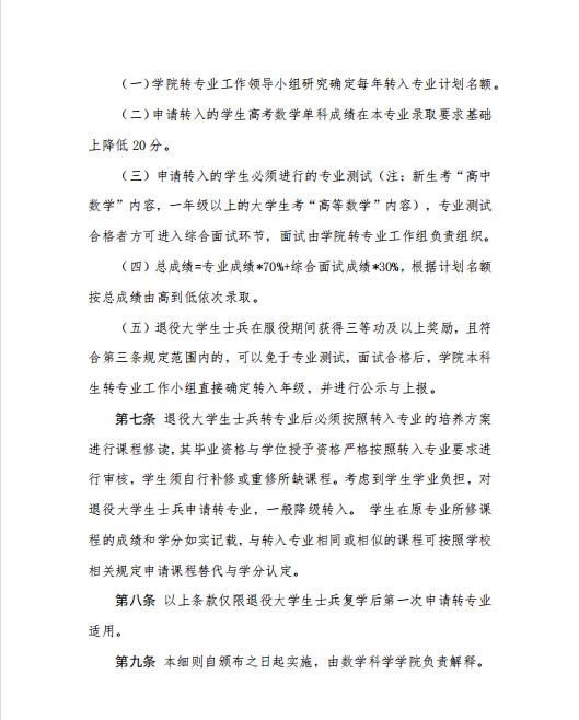 5.所有申请转入的学生必须进行《高等数学》的专业考试,成绩合格者,进入综合面试环节,面试由学院转专业工作组负责组织。