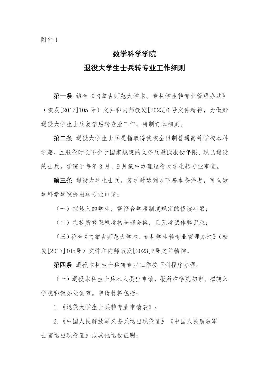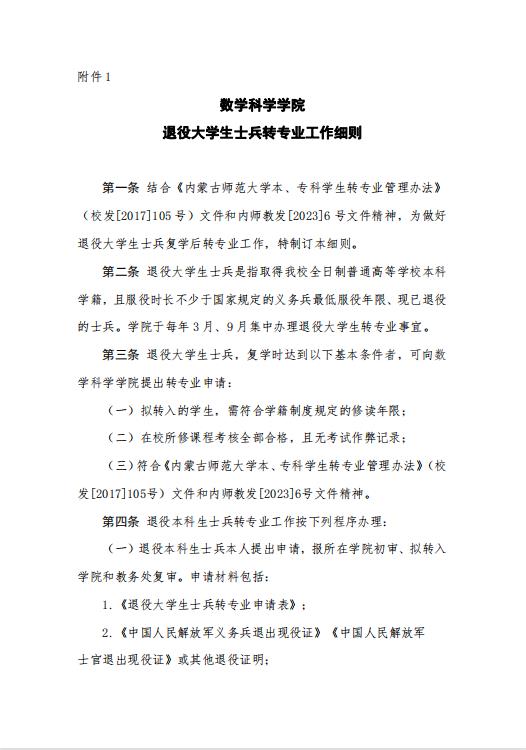 附件1 《sjb世俱杯官方网站退役大学生士兵转专业工作细则》