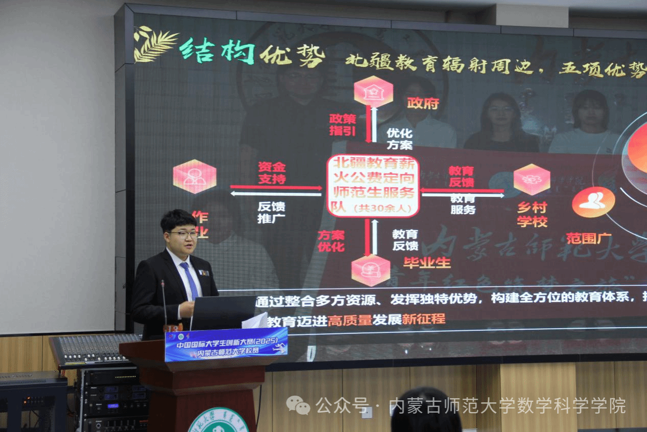 6月7日,以世俱杯 2023 级数学与应用数学 4 班白昊杨为项目负责人与2024级数学与应用数学3班张妍茹、胡雅璇,2024级统计学班郭珈伊为团队成员的“北疆教育薪火公费定向师范生服务队”项目组在中国国际大学生创新大赛(2025)sjb世俱杯官方网站校赛中脱颖而出,斩获校金奖荣誉。