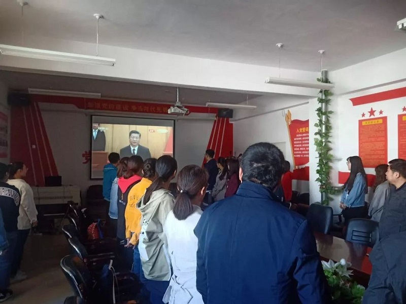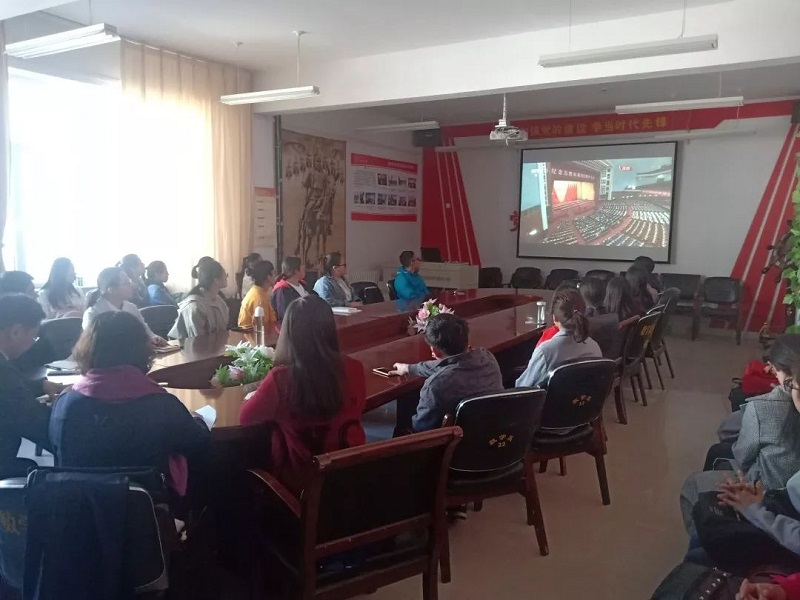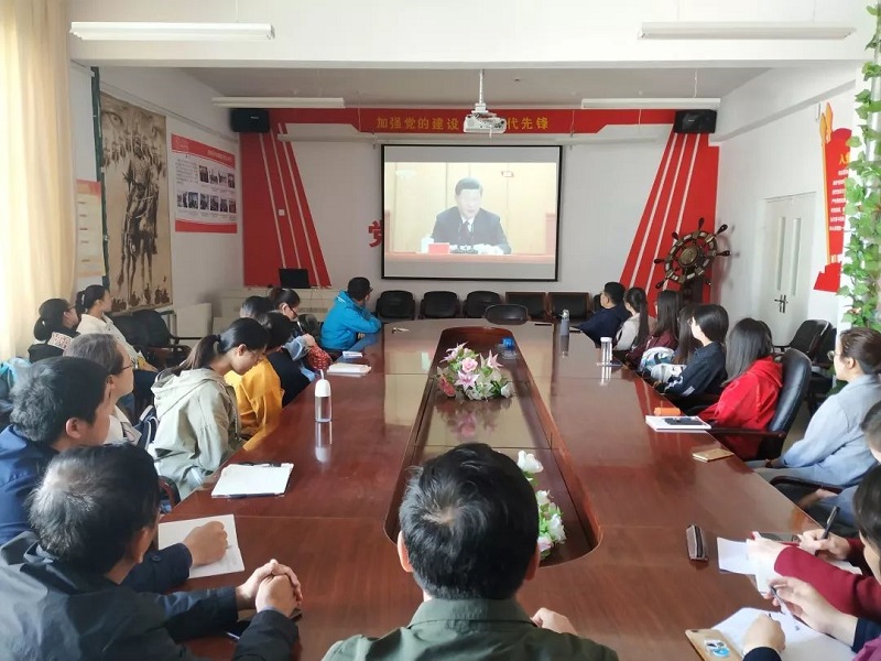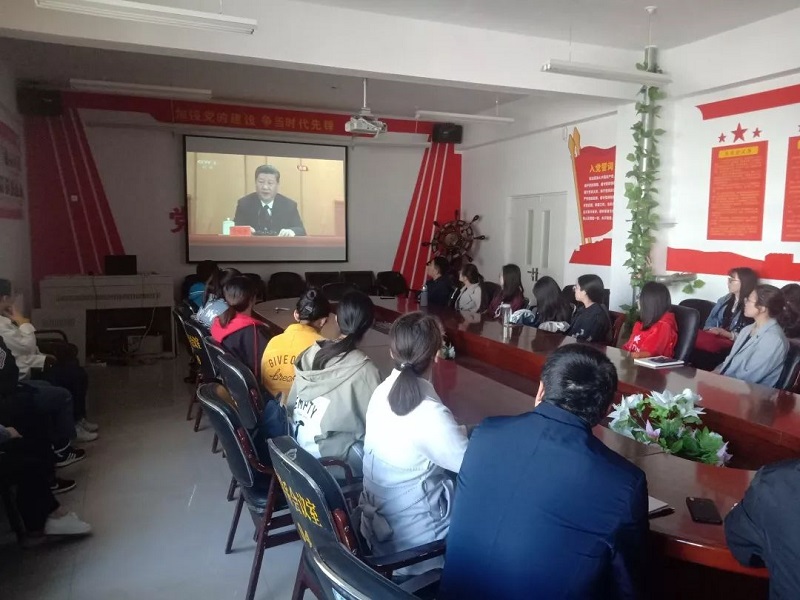 学院党总支书记扎其劳教授,学院党总支副书记、副院长季建光老师,督导员乾达门老师,团学干部3人,教师代表3人,团员36人于sjb世俱杯官方网站盛乐校区学院楼会议室观看大会直播。