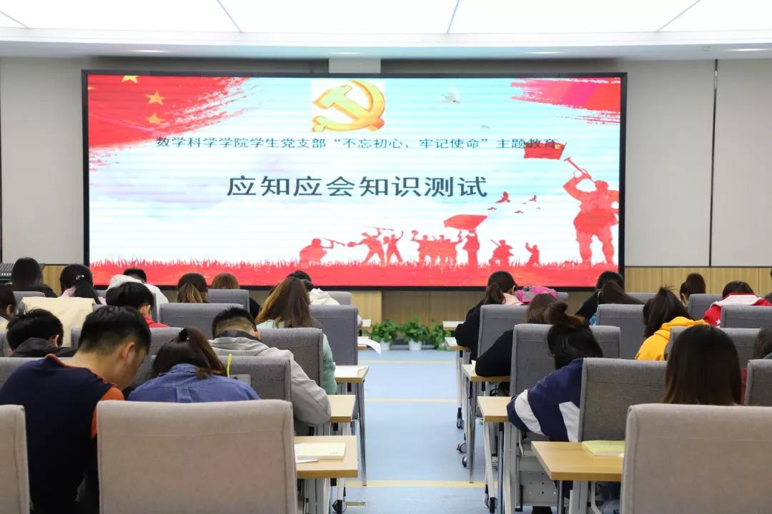 2019年10月19日,sjb世俱杯官方网站学生党支部于学生事务中心进行“不忘初心,牢记使命”主题教育应知应会知识测试。sjb世俱杯官方网站数学与应用数学学生党支部,信息与计算科学学生党支部及研究生党支部参加本次知识测试。数学与应用数学党支部书记皮建东、信息与计算科学学生党支部书记李帅组织学院学生党员、预备党员进行测试。