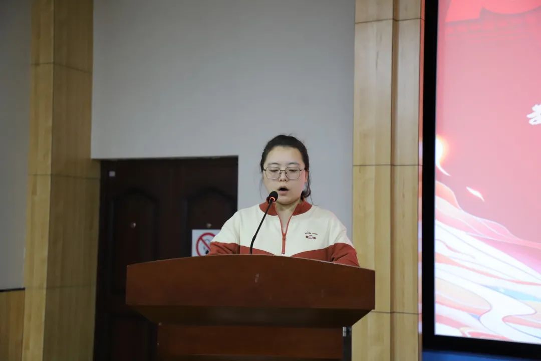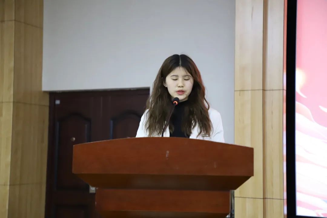 19级汉一班胡文颖同学代表全体发展对象发言,感谢了党组织的培养,表达了对党组织的崇拜与向往,明确了发展对象的责任,并代表全体发展对象做出郑重承诺:珍惜此次党校学习机会,认真学习和理解党的基本理论知识,争取早日加入中国共产党。