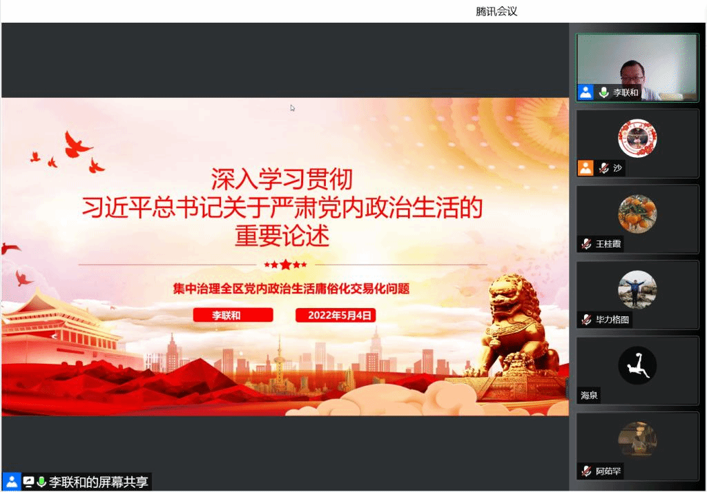 2022年5月4日,sjb世俱杯官方网站召开会议传达学习《关于集中治理全区党内政治生活庸俗化交易化问题的工作安排》,通报了党内政治生活庸俗化交易化问题清单。40名教师党员集体学习了习近平总书记关于严肃党内政治生活的重要论述。学院党委副书记李联和主持会议。