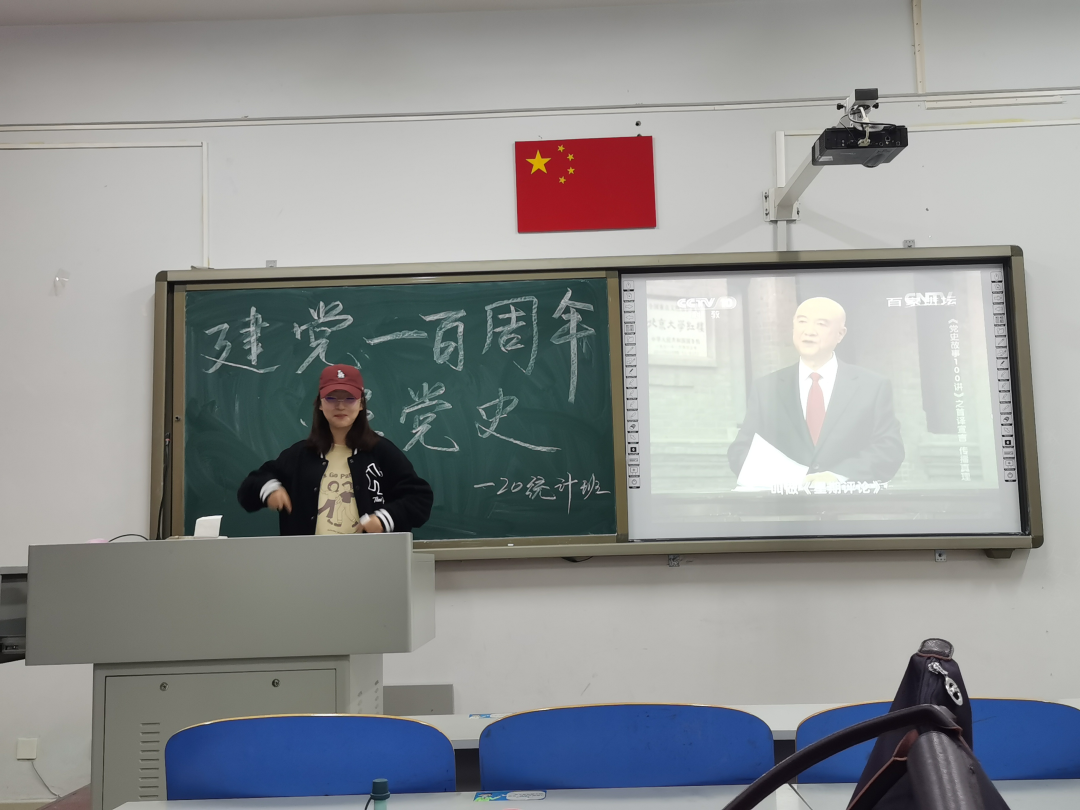 此次团日活动,同学们首先了解了党史背景,在团支书的组织下同学们上台交流分享建党100周年的相关知识。活动最后,同学们观看了《党史故事100讲》。