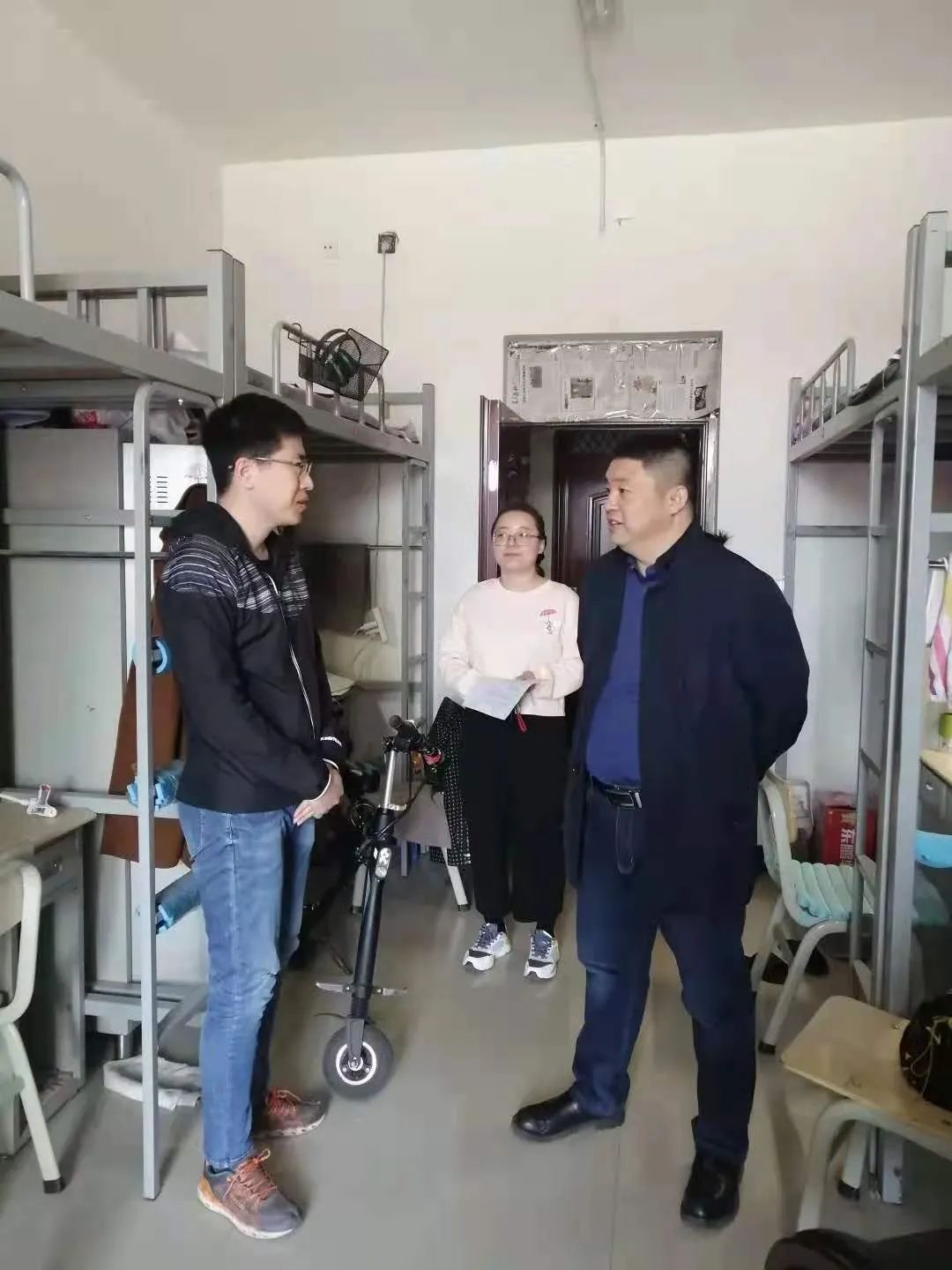 为了加强学生宿舍内务、卫生管理,推进学生宿舍文明建设,2021年4月28日上午世俱杯党总支副书记、副院长季建光老师,辅导员刘沙沙老师来到研究生公寓检查学生宿舍内务情况。