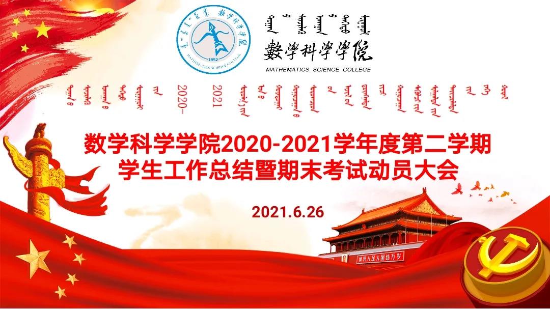 2021年6月26日下午,世俱杯2020-2021学年度第二学期学生工作总结暨期末考试动员大会于学院楼报告厅举行。本次大会由学院团总支书记皮建东老师主持,出席大会的领导和老师有:学院党委书记扎其劳教授,学院党委副书记、副院长季建光老师,学院副院长包霞副教授,学院学生思想政治工作辅导员、20级汉二班班主任刘勇波老师,20级蒙班班主任娜仁格日乐老师,20级汉一班班主任刘常彪老师。