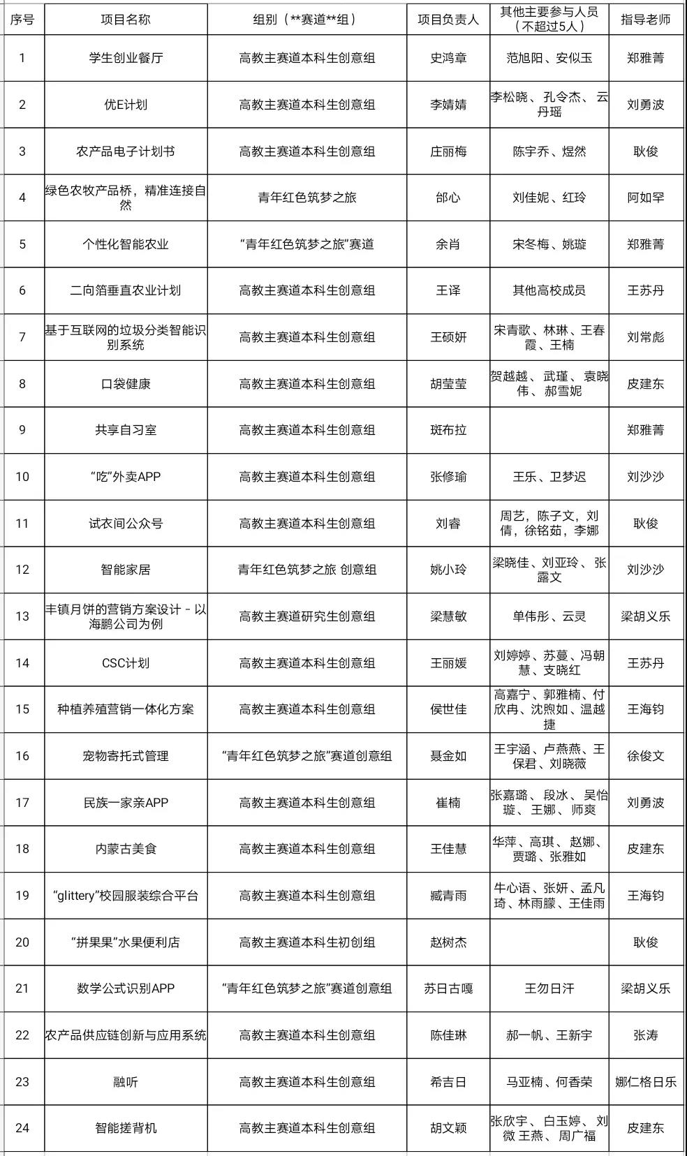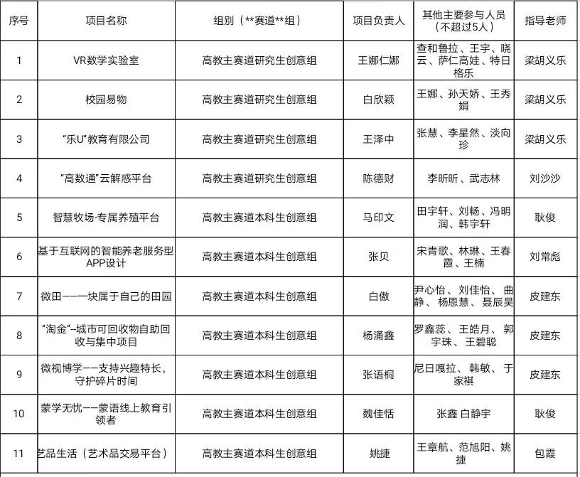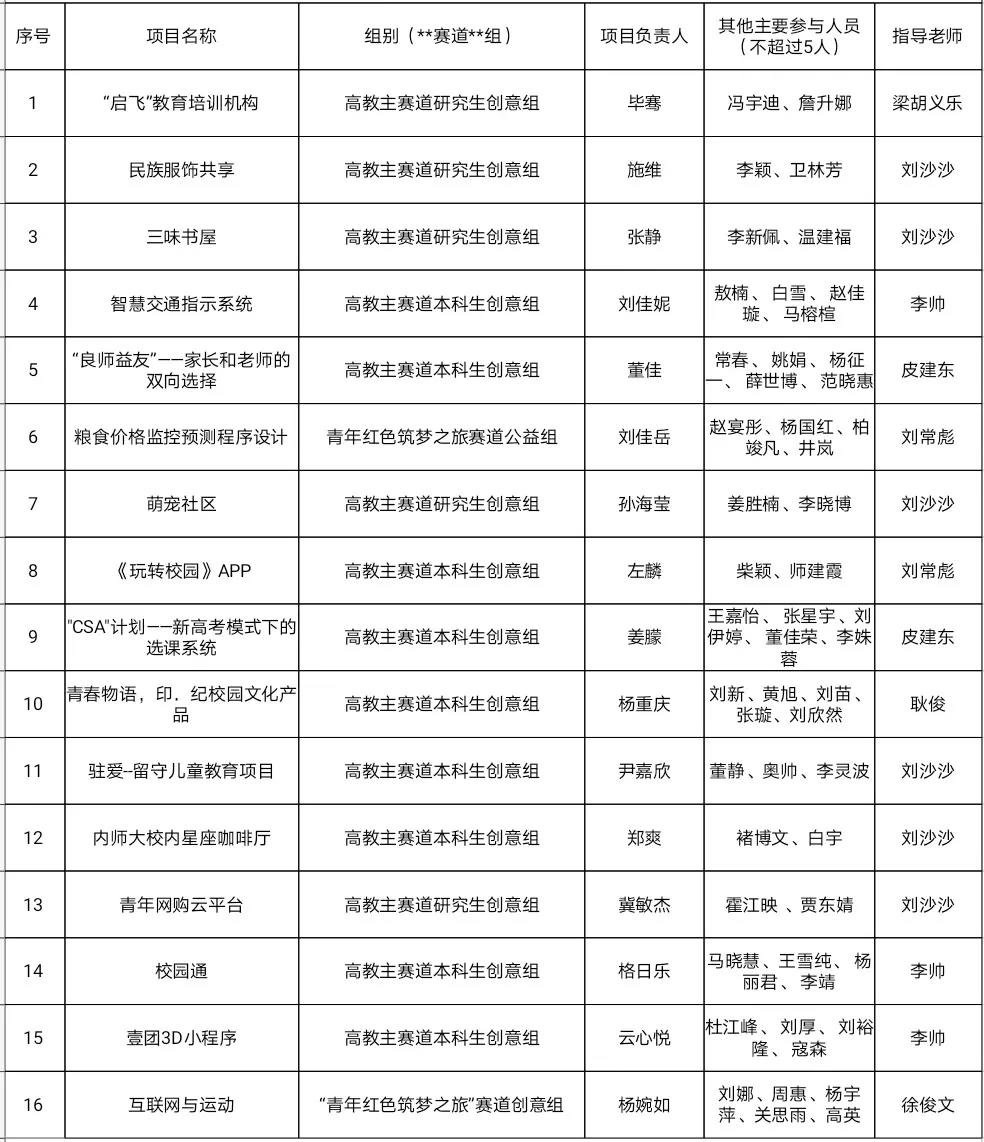 第七届中国国际"互联网+"大学生创新创业大赛sjb世俱杯官方网站院赛初审名单: