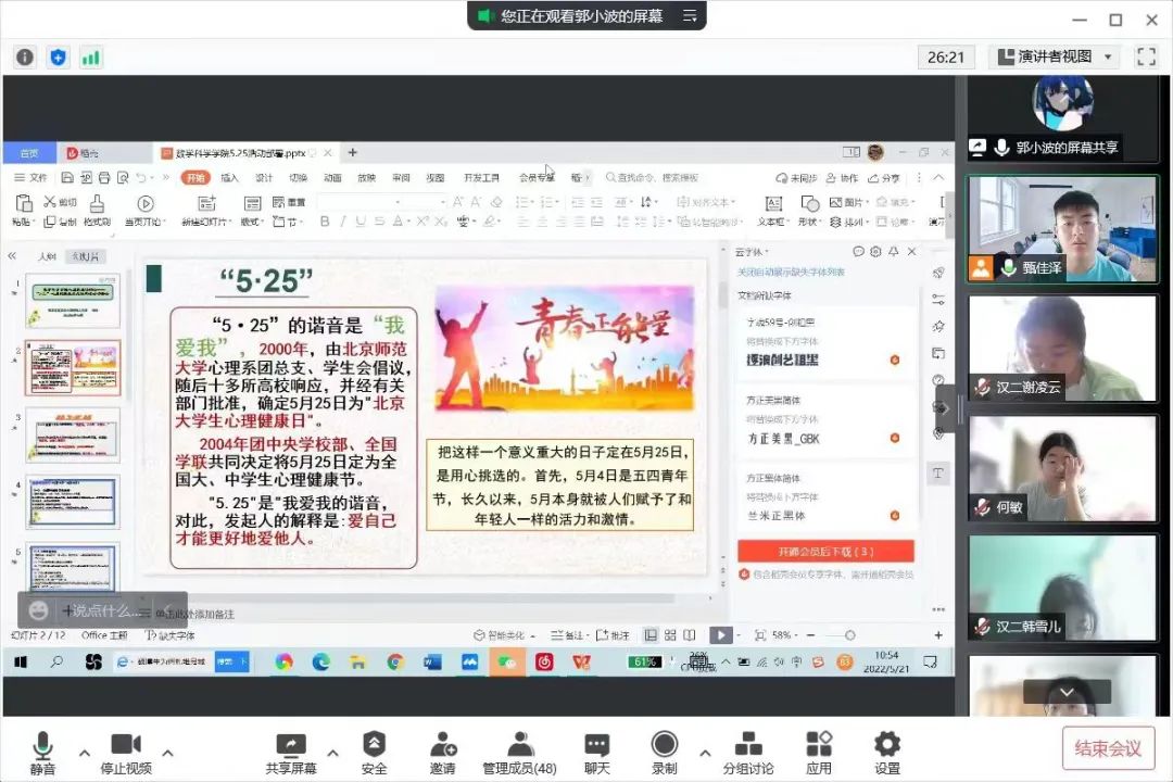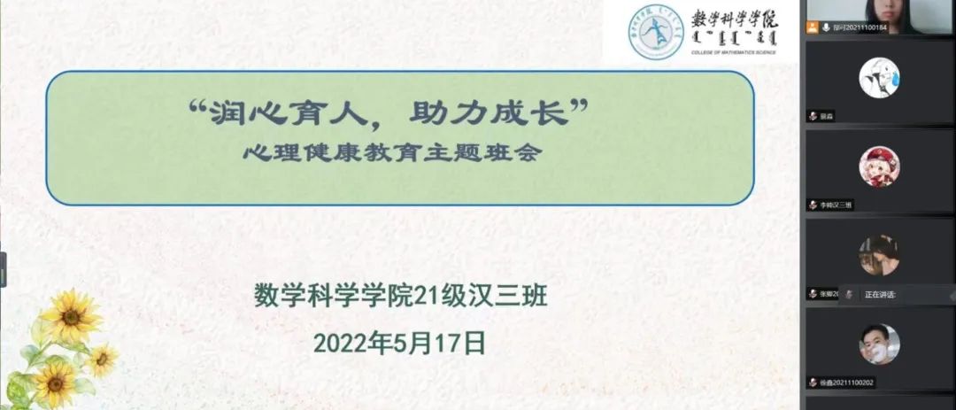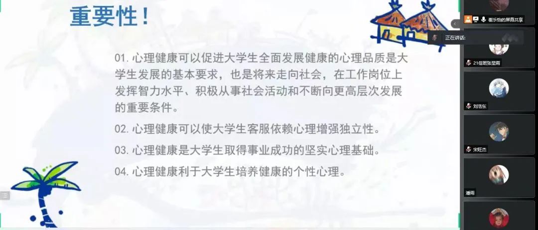 为深入推动大学生心理健康教育,在大学生群体中普及心理健康知识,引导大学生积极主动地关注自身心理健康,促进大学生健康全面发展,世俱杯于5月16日—5月24日召开“润心育人,助力成长”心理健康主题班会,向同学们介绍5.25大学生心理健康日的由来、大学生心理健康的重要性、学校心理健康教育的服务机构以及服务内容、介绍心理健康的重要性等,保障同学们能够度过一个愉快的大学生活。