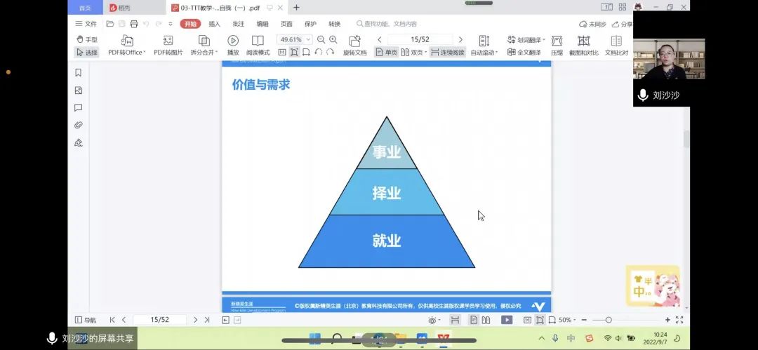 为帮助新生了解专业发展动态、强化专业归属感,树立专业学习信心,培养专业意识和思维能力,激发学习内在动力,9月7日上午10点,sjb世俱杯官方网站学生思想政治辅导员刘沙沙老师于腾讯会议上开展了“2022级新生入学教育——新生学业规划引导教育讲座”。