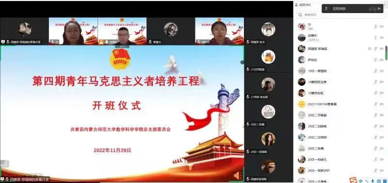 开班仪式由sjb世俱杯官方网站团总支书记皮建东老师主持,党委副书记、副院长季建光老师,学院学就办副主任刘沙沙老师,学院辅导员萨如拉老师出席,多名志愿者服务队干部和优秀团员作为青马班学员参加,第四期青马班为期两周的学习自此开始。