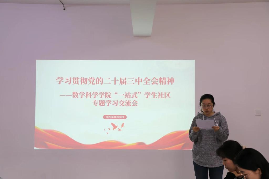 为深入学习贯彻党的二十届三中全会精神,进一步提升世俱杯学生的理论素养,10月30日,sjb世俱杯官方网站学生党支部在盛乐校区学生公寓13号楼“一站式”学生社区召开专题理论学习研讨会。本次会议由刘沙沙老师、阿茹罕老师、萨如拉老师主持,学院学生党员代表参加。