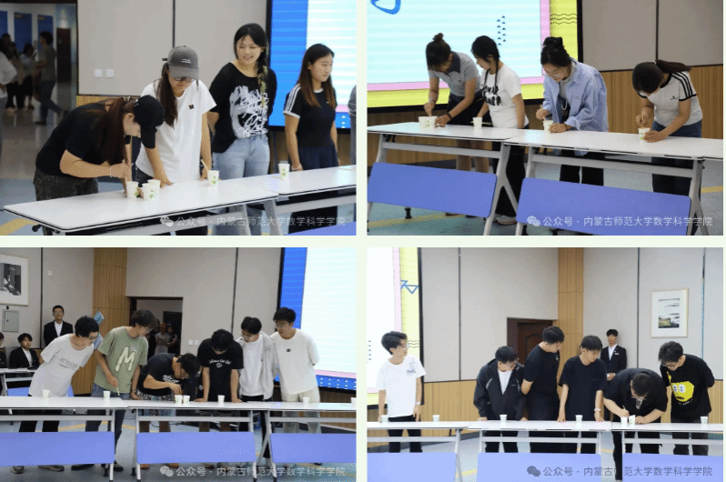 比赛中,负责比划的同学运用丰富的肢体动作与表情,结合生动模仿传递词语;猜词同学保持专注,快速反应并准确理解队友表达,双方配合默契。