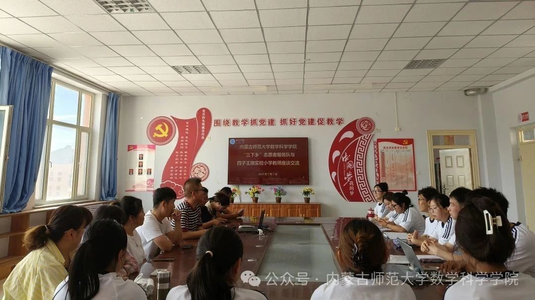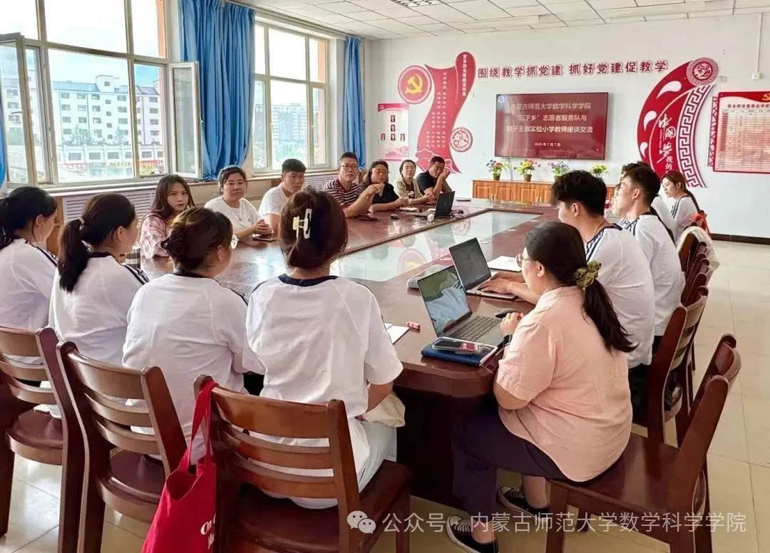 7月7日,sjb世俱杯官方网站教育关爱服务团与四子王旗实验小学数学组教师开展学习交流活动,大学生志愿者与资深教师共聚一堂,围绕基础教育发展与数学学科创新教学主题展开研讨。志愿者们虚心聆听一线教师分享基层教学实践经验,认真学习课堂组织与学生管理智慧,从课堂互动细节到课后跟踪方法,紧扣学生实际,让初执教鞭的小老师们茅塞顿开。