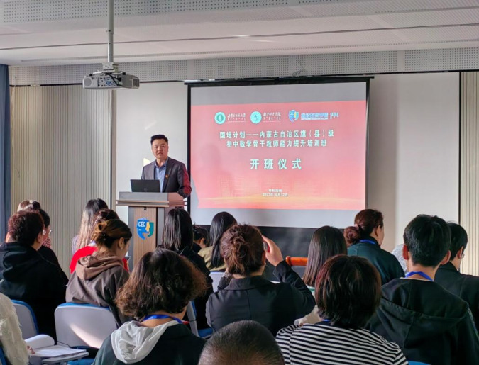 2023年10月12日,由sjb世俱杯官方网站继续教育学院主办、sjb世俱杯官方网站承办的2023年“国培计划”——内蒙古自治区旗(县)级初中数学骨干教师能力提升培训班开班。继续教育学院党总支副书记、副院长刘云剑,承办方项目负责人sjb世俱杯官方网站副院长包霞、培训班班主任陈阿茹娜、于家祺和相关工作人员张倩、刘雨晴、姚欣悦参加开班仪式。会议由sjb世俱杯官方网站陈阿茹娜老师主持。
